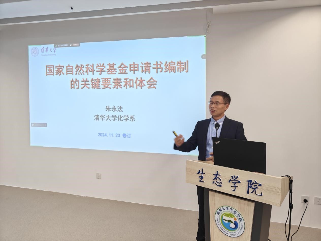 朱永法教授以《国家自然科学基金申请书编制的关键要素和体会》为题,从申请人、评审人不同角色思维模式的角度,向大家详细讲解了申请书撰写过程中从总体布局、题纲编制、项目申报书各个部分的写作技巧、申请代码和关键字的重要性等一系列关键要素,强调了创新性、科学性和良好的工作基础在其中的重要地位,并结合自身丰富经验,通过实际案例进行了深入浅出的说明。