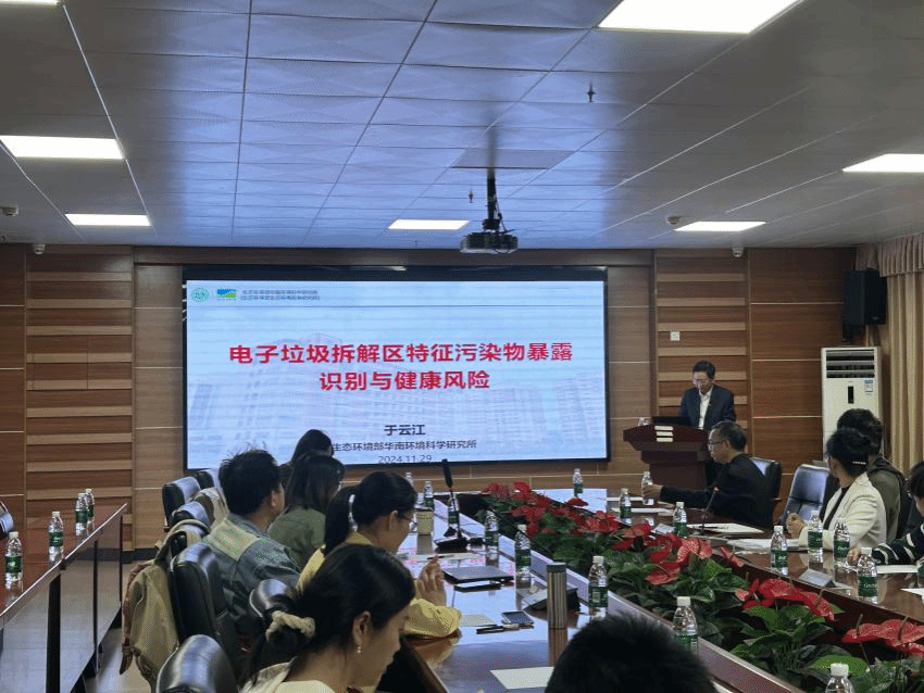 讲座中,于云江研究员展示了电子垃圾拆解现场的工作情景,直观地说明了污染物的来源和暴露途径。他还特别强调了TBBPA(四溴双酚A)的健康风险评估,通过构建典型暴露场景,确定了TBBPA在中国人群中的暴露参数。讲座内容丰富,数据详实,引起了在场师生的广泛关注和热烈讨论。