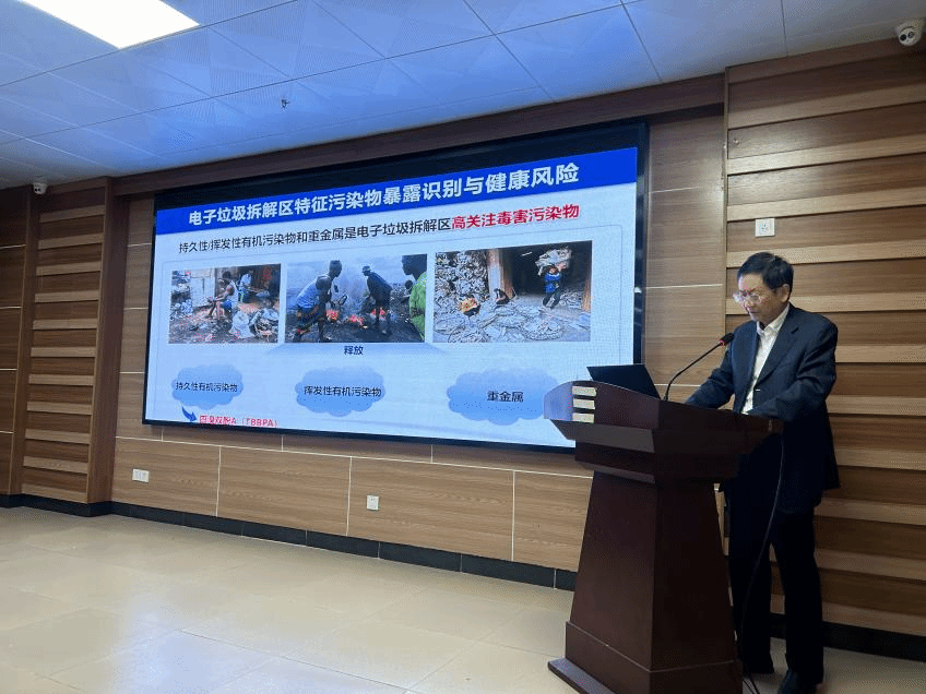 于云江研究员在讲座中详细介绍了电子垃圾拆解区特征污染物的暴露识别与健康风险。他指出,电子垃圾拆解区的污染物主要包括持久性有机污染物(如多氯联苯和多溴联苯醚)、挥发性有机污染物(如苯和甲苯)以及重金属(如铅、镉、汞等)。这些污染物对人体健康构成严重威胁,可导致呼吸系统疾病、神经系统损伤等多种健康问题。
