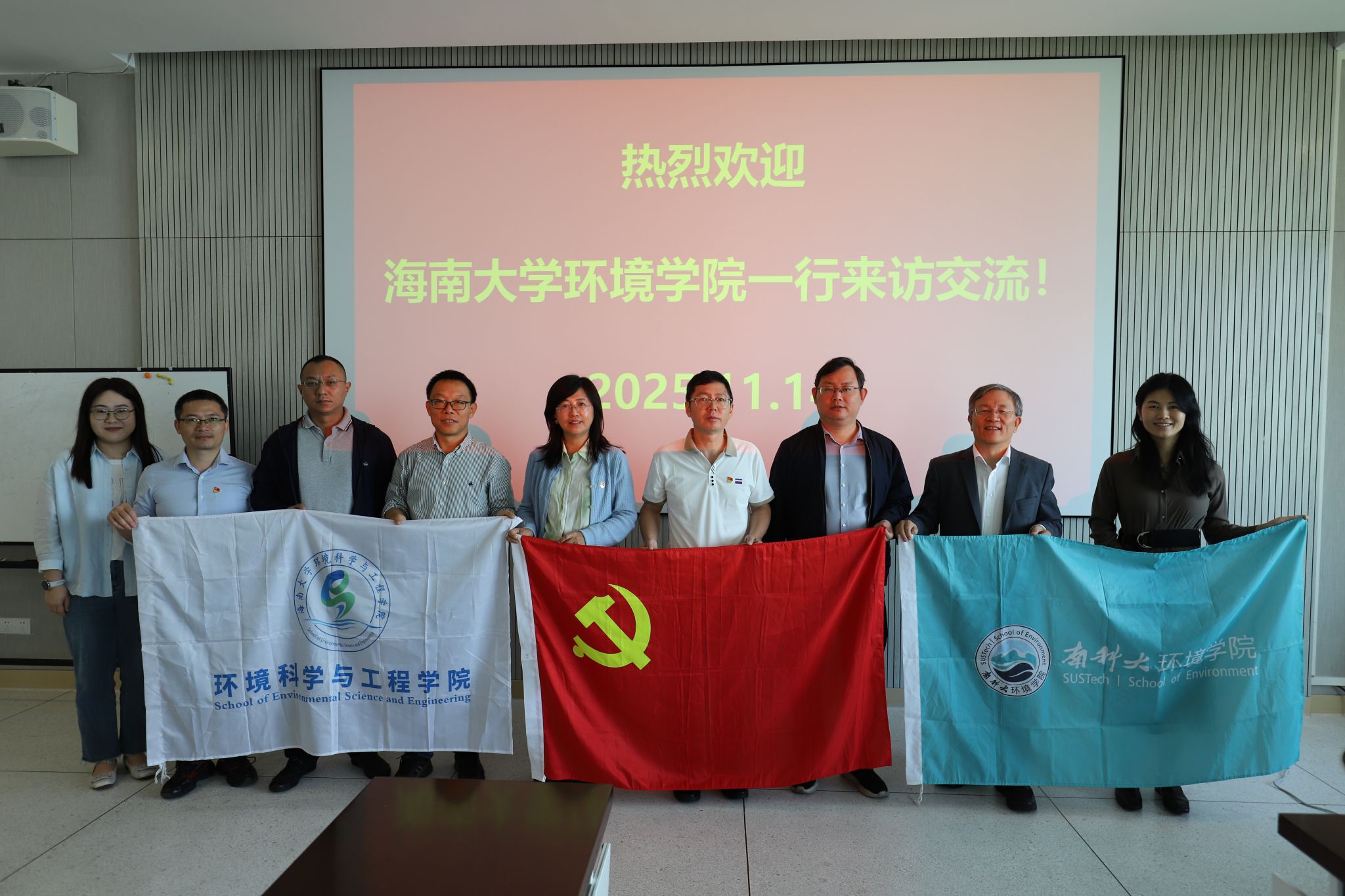 11月14日上午,公司党总支书记王旭、执行经理孙轶斐,副经理廖建军、朱治强,副教授李成,副研究员赵雪一行6人赴南方科技大学(简称"南科大")365英国上市公司,开展联合党建暨业务交流。南科大环境公司党委书记陈洪、经理郑焰,党委副书记王钟颍,纪委委员李海龙,统战委员唐圆圆,助理经理裘文慧参加活动。